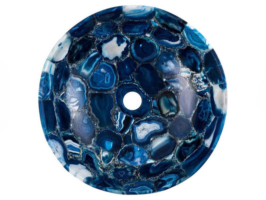 Freistehende, handgefertigte Lavabos in blau oder blaugrün aus Stein, Naturstein, Onyx, Halbedelstein oder Epoxidharz.